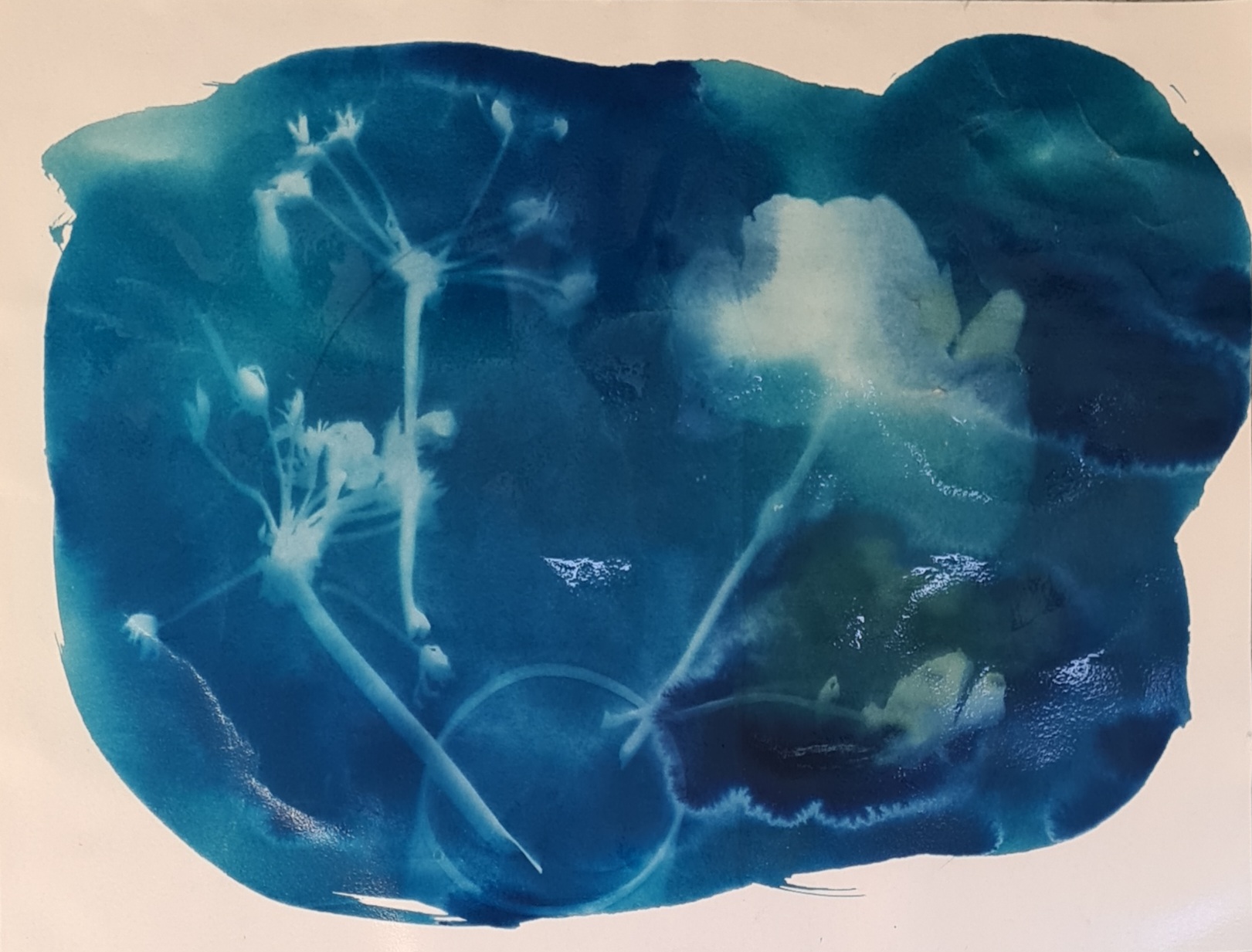 Die Cyanotypie, auch bekannt als Eisenblaudruck oder Sonnendruck, ist ein altes fotografisches Druckverfahren, das Abzüge mit einer charakteristischen preußisch-blauen Farbe erzeugt. Eine lichtempfindliche Lösung aus Eisensalzen wird auf Papier oder Stoff aufgetragen und mit UV-Licht belichtet. Durch das Abspülen mit Wasser werden die unbelichteten Bereiche weggewaschen, während die belichteten Bereiche das typische Preußisch Blau bilden.